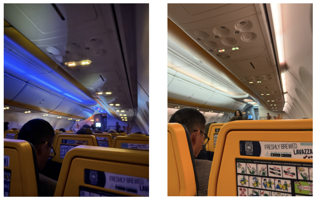 Fortunately, the Ryanair staff dimmed the lights pretty early on. I put my earbuds back in, turned on some soothing jazz music, rested my head on the window, and closed my eyes. Not even two minutes after they turned the lights off, the staff announced that they’d be doing some sales, and the blinding lights were turned back on. Over 30 minutes of promotions happened with sales ranging from snacks, drinks and WiFi all the way to magazines, alcohol, cigarettes, and lottery scratch-off tickets. Finally, the lights turned back off and I was able to fall asleep. Except, in the span of the last 10 minutes before landing, the lights turned on to signal to the customers that we were landing soon, before being turned off, and then back on again right before landing. The lighting changed so frequently during the flight that I almost forgot I was on an airplane and not in a nightclub.