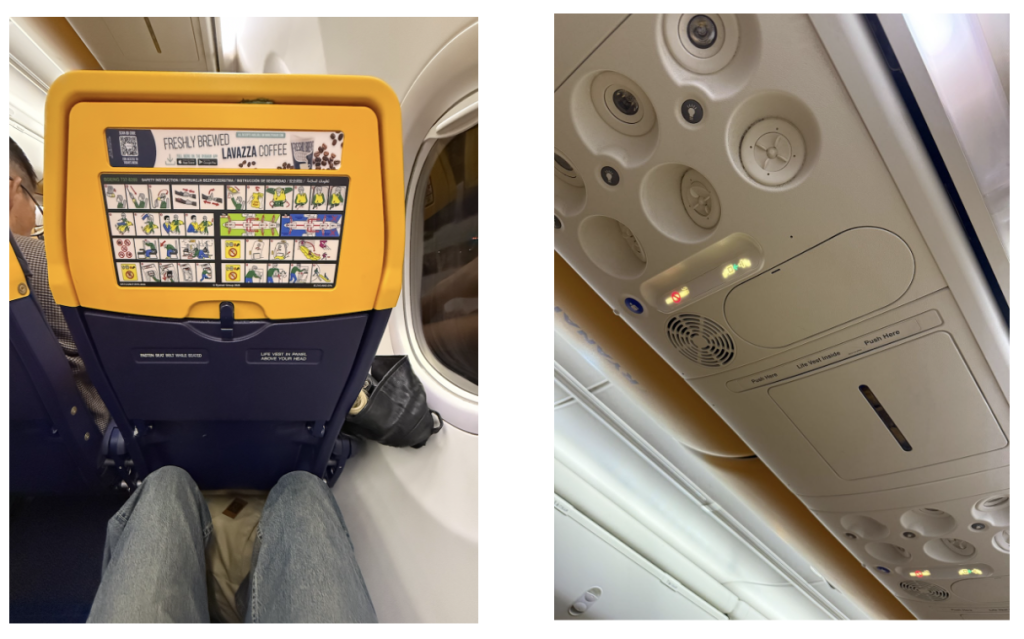 In addition to the below-par Ryanair experience, I also have some comments on the aircraft itself. Firstly, the ceiling of the aircraft was far too low for comfort. To put it into perspective: I am 173cm or about 5 foot 8, and I felt as though I practically had to duck in order to make it onto the plane. Additionally, the air conditioning vents — and the airplane in general — was really dirty. There was dust collecting in the crevices of the air conditioner, which made it look like it hadn’t been cleaned in years. I mean, I guess this wasn’t too much of an issue because the aircraft was freezing cold, but still – I expect an aircraft at a minimum to be clean. Throughout the whole flight, there was this unpleasant ringing that I believe came from the plane’s air conditioning or ventilation system. The seats were also extremely uncomfortable. Of course, I know it is a budget airline and the flight was only 3 hours, but the seats were so rough my glutes felt numb afterwards. Moreover, the speakers were really loud, and any time a flight attendant went to speak on the intercom, they were either mumbling, talking too loudly, or stuttering when speaking. The leg room was minimal, there was no place under the seat to charge a device, and there wasn’t a compartment or pocket sleeve in front of you to store your belongings during the flight — which also meant that there wasn’t a barf bag provided in case you felt sick. I wonder, would you have to pay for the barf bag as well?