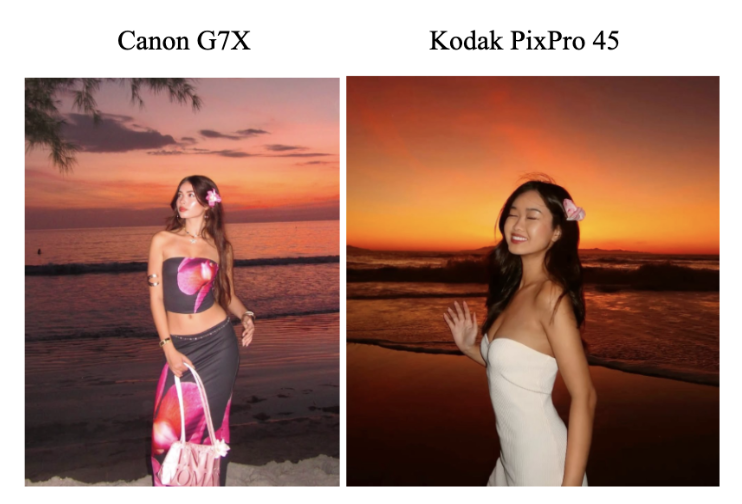 In general, I’d recommend the Canon G7X or the dupes of it (like the Kodak) for people who want a digital camera that produces very crisp, almost pristine looking photos. If you aren’t too interested in the vintage look but still want to feel aesthetic by pulling out your digicam at parties or at picnics at the beach, then those are the cameras for you!